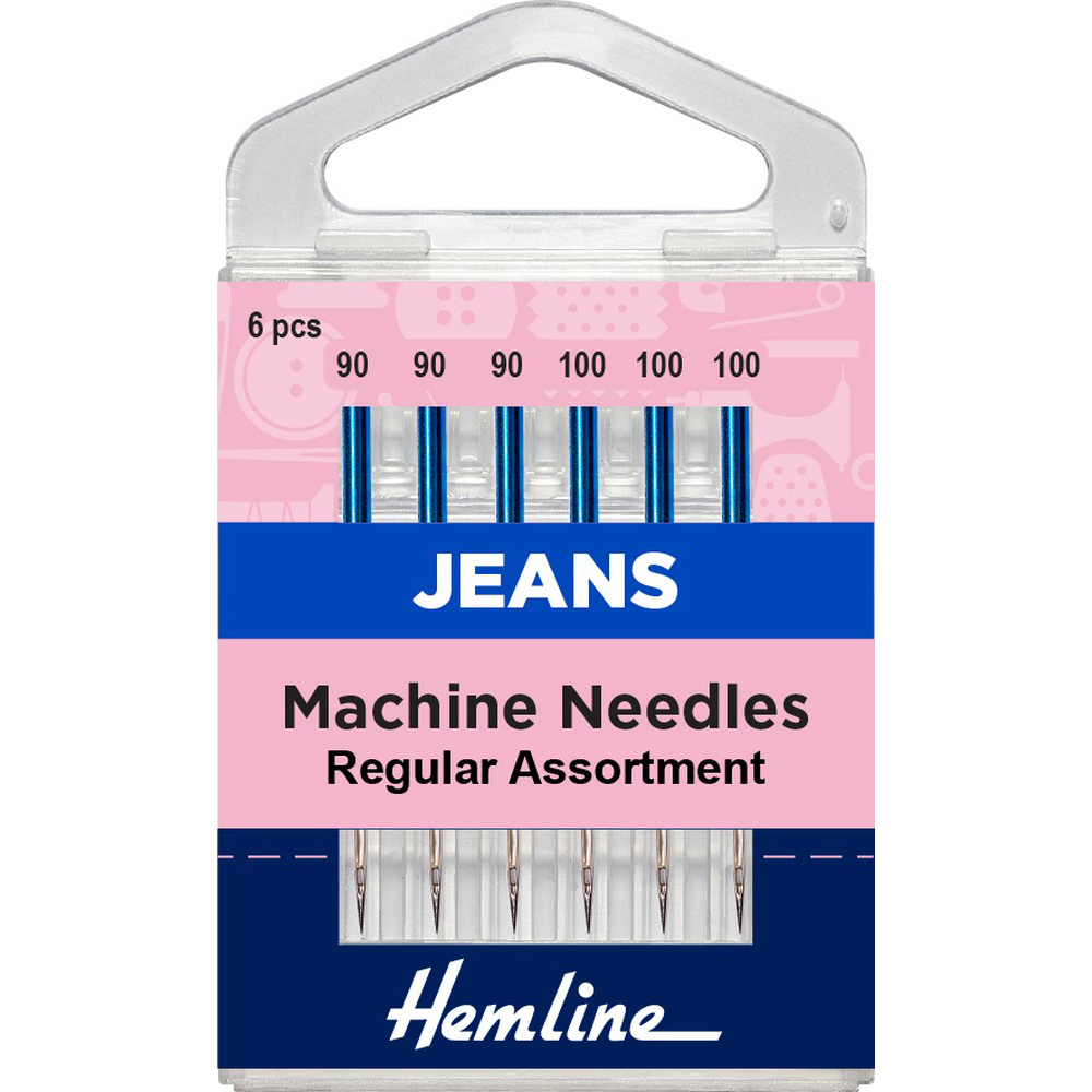 Pack of jeans needles, three size 90 and three size 100. Perfect for those bulkier fabrics.